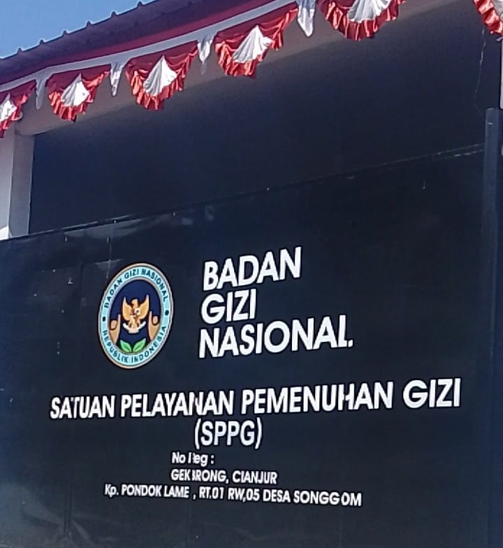 Program MBG tersebut dijalankan oleh SPPG Yayasan Cahaya Lestari yang berlokasi di Kampung Pondoklame, RT 01/05, Desa Songgom, Kecamatan Gekbrong, Kabupaten Cianjur.