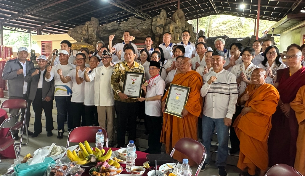 Isfhan Taufik Munggaran (batik kuning) dan Ketua FKUB KH Choirul Anam memegang Piagam Rekor MURI (ist)