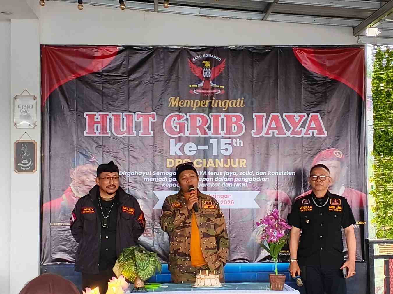 CIANJUR|INICIANJUR.COM – Dewan Pimpinan Cabang (DPC) Gerakan Rakyat Indonesia Bersatu (GRIB) Jaya Kabupaten Cianjur memperingati Hari Ulang Tahun (HUT) ke-15 dengan suasana sederhana namun penuh makna. Mengusung tema “Dirgahayu, semoga GRIB Jaya terus jaya, solid, dan konsisten menjadi garda terdepan dalam pengabdian kepada masyarakat dan NKRI,” kegiatan ini digelar di sebuah angkringan di Cipanas pada Sabtu (11/4/2026).