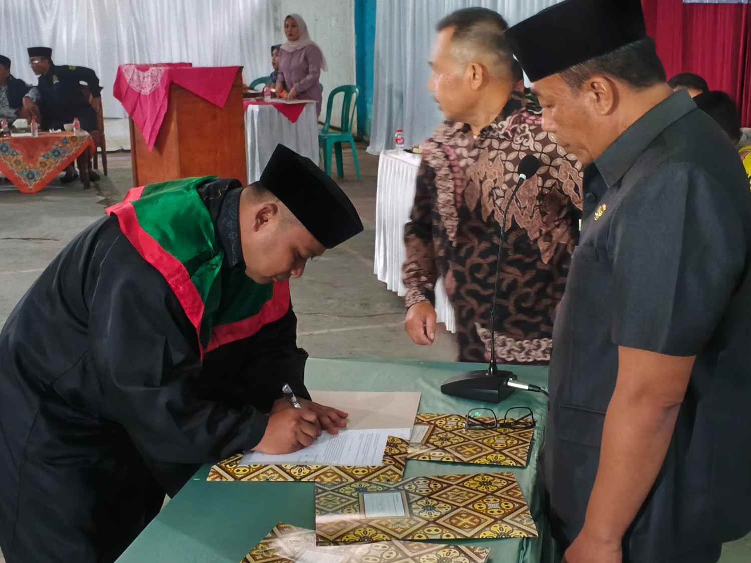 CIANJUR|INICIANJUR.COM – Kepala Desa Cijedil, Pudin, memimpin langsung pelantikan dan serah terima jabatan (sertijab) Ketua Rukun Warga (RW) dan Rukun Tetangga (RT) masa bakti 2026–2030 di Gedung Olahraga (GOR) Desa Cijedil, Kecamatan Cugenang, Kamis (23/4/2026).